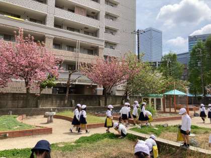 学習園にある草花や虫の観察を行いました。気温も暑く、春というよりは夏を感じながらの学習となりました。