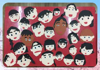 6年生はじめての図工は、学年目標の周りに飾る自画像づくりをしました。
