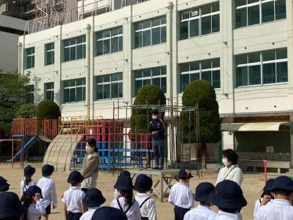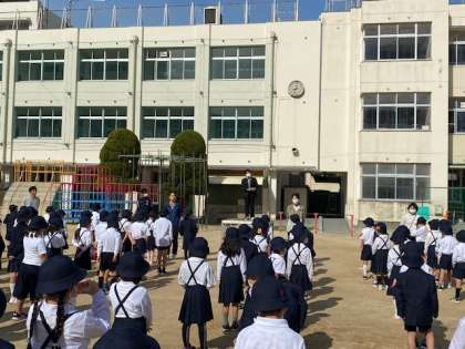 先週が1年生とほかの学年との対面式を行いました。そして今日が1年生も加わり、全校児童での初めての朝会でした。どの学年もとても静かに素早く並ぶことができていましたね。今日は校長先生から「静かをつくる」というお話がありました。今日の皆さんのように、朝会のような全員が参加する行事や授業中など、その時の状況を自分で確認し、静かをつくっていきましょう。