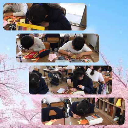 今日の図工の時間は、入学、進級おめでとう集会で1年生に手渡すメダルづくりをしました。