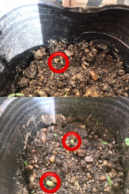 今日の放課後に様子を見ていると、なんと芽が出ているものがありました!!