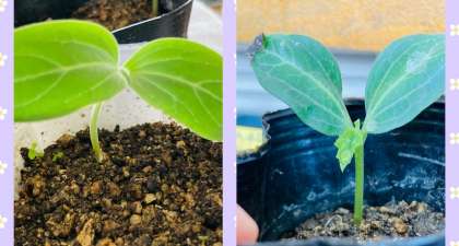 みんなが大事に育てていたヒョウタン(左)とヘチマ(右)がやっと顔を出しました!