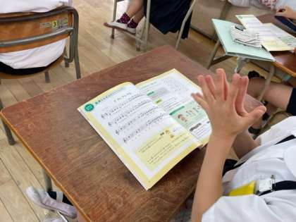 3年生の音楽科の様子です。リズミカルな曲に合わせて様々な手拍子をしています。グループごとに違う手拍子をして楽しみました!『グリグリグリグリグリラムサムサム♪♪♪』