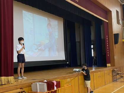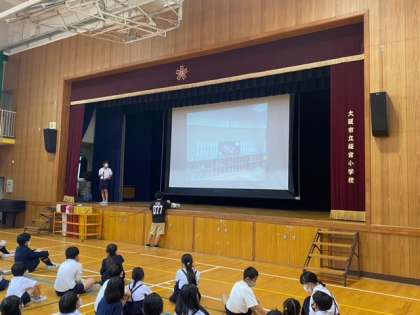 今日の児童集会は「ここはどこでしょう?」でした。前のスクリーンに映し出される、ある場所の一部の写真を見て、どこの場所かを当てていきます。ファミリーのみんなで考えて、楽しくクイズをしていました。