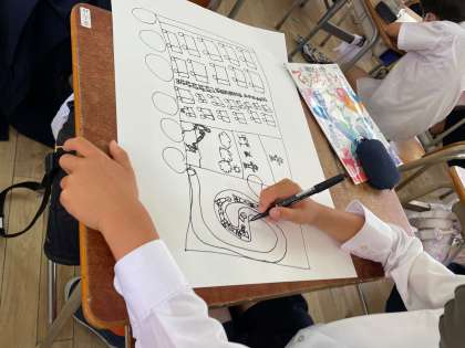 3年生の図工科の様子です。不思議な乗り物に乗って、行きたい場所へ向かいます!!完成が楽しみですね(^^♪