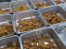 一口トンカツは、ワイン、塩、オールスパイスで下味をつけた後、衣をつけて揚げています。卵不使用のため、卵アレルギーの児童も食べられるメニューになっています(^^)