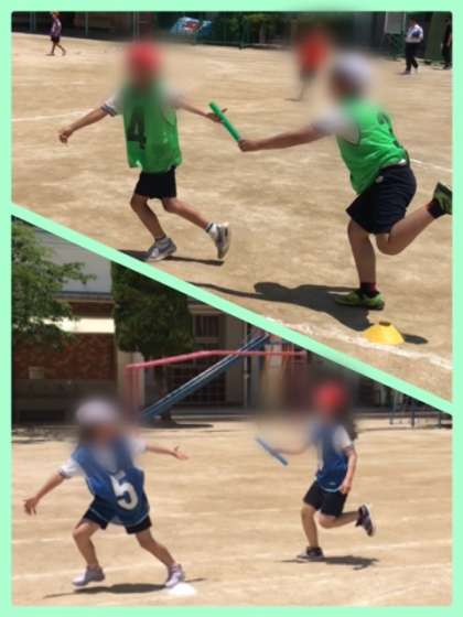 なめらかなバトンパスをするためには,どのようにもらったり,出したりすればよいのかを話し合い,最後にはタイムを計測しました。