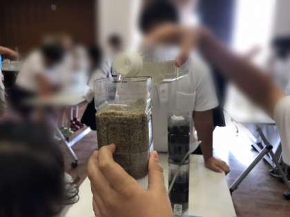 ろ過実験をして,水が綺麗になる様子を見ました。