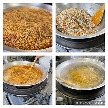 ミートソースは牛ひき肉と豚ひき肉の2種類を使用し、お肉の味わいがしっかりと感じられるスパゲッティでした。ミートソースに使用するブラウンルゥは小麦粉と油から手作りしています。どの学年の子どもたちも、たくさんおかわりして好評でした♪