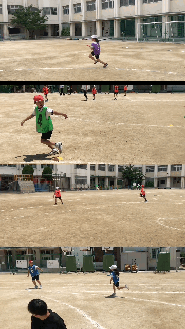 4年生は,体育でサークルコースリレーに取り組んでいます。スムーズにバトンをつなごうというめあてに向かって,それぞれのチームが工夫して練習している様子です。