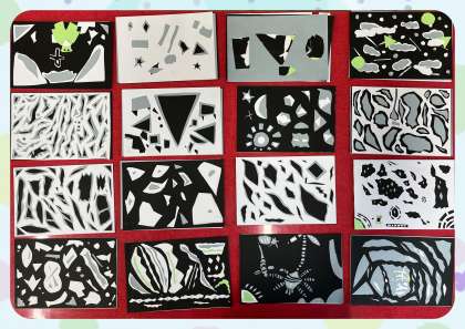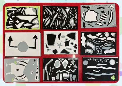 画用紙をカッターナイフで切り抜いたり、切り取ったりして、試しの作品を作ってみました。