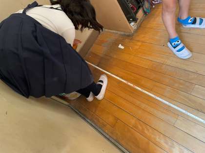 3年生の算数科の様子です。今日は巻尺を使って教室の長さを調べました。『思ったより短かった!』『予想通り、ぴったり!』など子どもたちから明るい声がたくさん聞こえてきました。