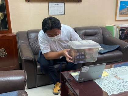 朝から雨が降っていたので児童朝会はリモートで行いました。今日は校長先生が今月の本や、学校で最近飼い始めたカブトムシの紹介をしてくださいました。
