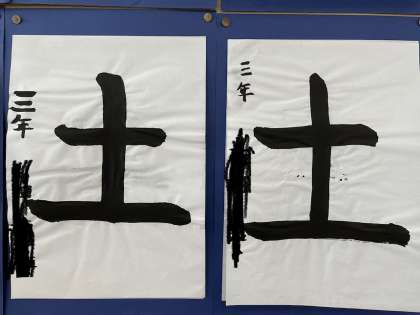 3年生は『土』という字を毛筆で書きました。筆を立て、丁寧に取り組むことができていました。少しずつ上手になってきましたね!