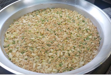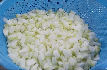 「とうがんのみそ汁」に使用しているとうがんは、漢字では「冬瓜」ですが、夏が旬の食材です。そのまま冷暗所で保存しておけば、冬までもつことから、「冬瓜」と記すようになったと言われているそうです。