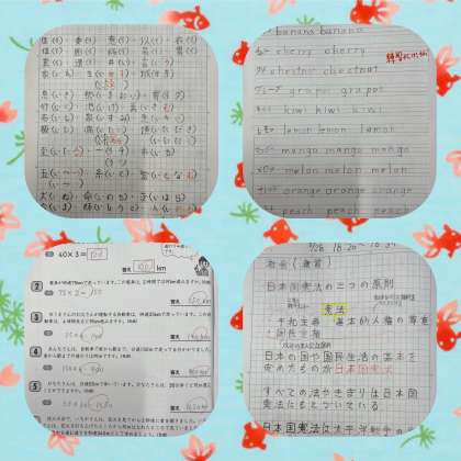 漢字、英語、算数、社会、どのノートもていねいにノート作りができていますね!