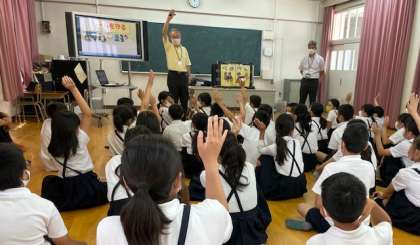講師の方を招き、ルールを守る大切さや犯罪被害に遭わないための防止方策などについての学習をしました。パワーポイントやペープサートを見ながらだったので、とても分かりやすく、子どもたちもどういう行動をとるべきなのかなど、しっかりと学ぶことができました。