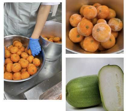 今日の中華煮には夏が旬の「冬瓜」が登場しています。夏が旬なのに、なぜ「冬」の字が入っているのか…。それは、「皮が厚く中の水分が失われにくい特性があり、冬まで日持ちするから」といわれています。95%が水分。カリウム、ビタミンCなどを含みます。栄養をつけて、今週も運動会練習がんばってね!(^^)