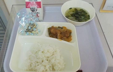 ごはん、牛乳、酢豚、中華スープ、アーモンドフィッシュ