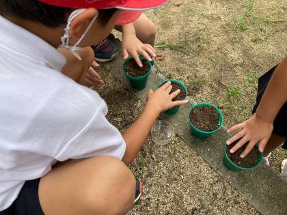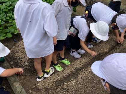 生活科「野さいをそだてよう」第二弾として、なにわの伝統野菜である田辺大根と天王寺蕪の種を蒔きました。育てるのが難しいとされる、なにわの伝統野菜ですが、大きく成長してほしいです。