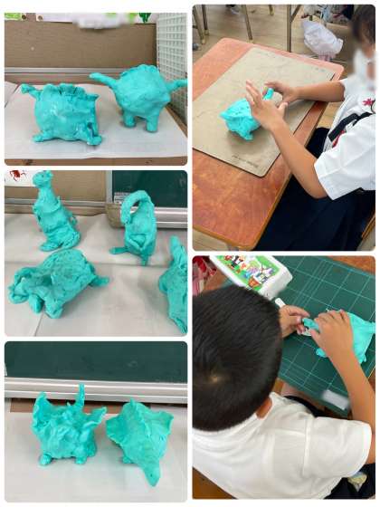 図工科では、粘土で怪獣を作りました!粘土のかたまりから、足や顔などを捻り出します。それぞれ、かっこいい怪獣や怖い怪獣などをイメージして作りました。