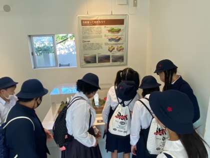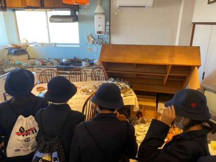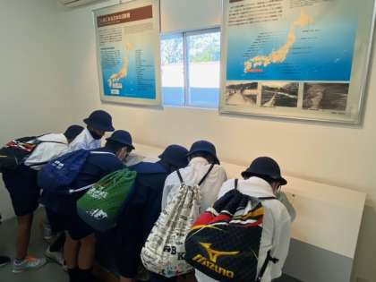 見学中です!!災害が起こった時に備えて、何ができるのか、「減災」についてしっかり考えていきましょう。