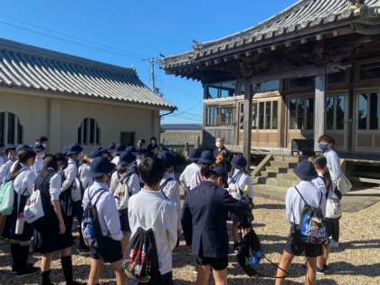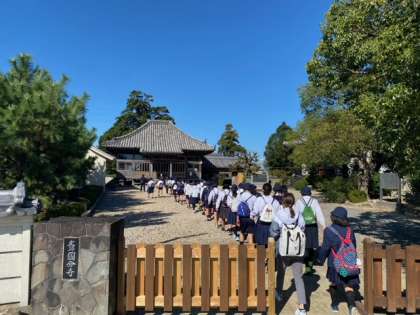 淡路島にある国分寺の見学をしました。住職の方に国分寺ができるまでのお話を聞きました。社会科で学習もしたので、みんな「あ〜!!」っと頷いて聞いていましたね。実物も見せていただくことができ、とても勉強になりました。ありがとうございました。