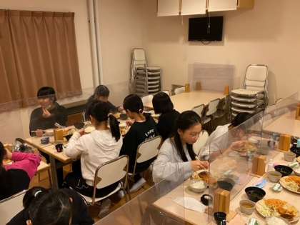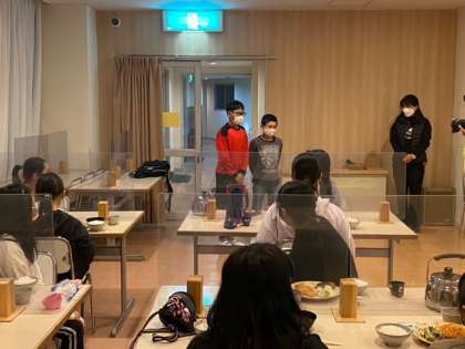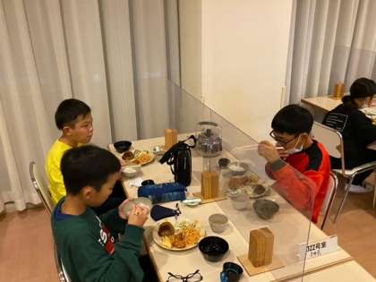 焼き板の絵付けをした後は夕食でした。たくさん活動したのでお腹が空きましたね。みんな、たくさん食べていました!!