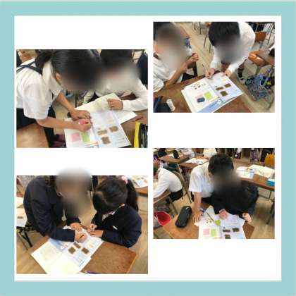 今日の算数科では、広さくらべをしました。陣取りゲームをして陣地を増やした後、どちらが広いかをくらべる方法を考えました。