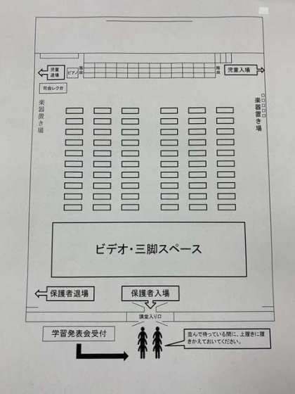 ◯会場は、学年ごとの完全入れ替え制になっています。お子様の学年の発表が終わりましたら、連続で参観される方以外は、ご退場ください。
