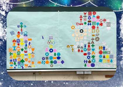 近くで見るといろんな模様の切り紙ですが、遠くから見ると…。