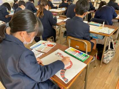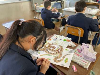 綿棒や爪楊枝を使って模様や色合いを表現しています。