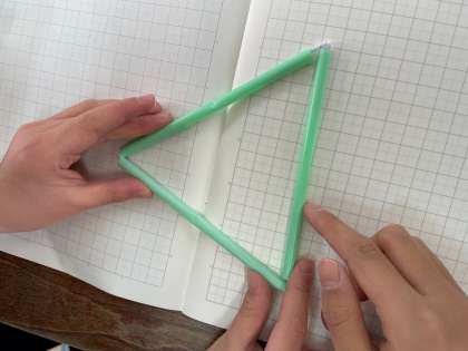 3年生は算数科の時間にストローとモールを使って三角形を作りました。辺の長さに注目すると3つの仲間分けができましたね!復習しておこう!!!