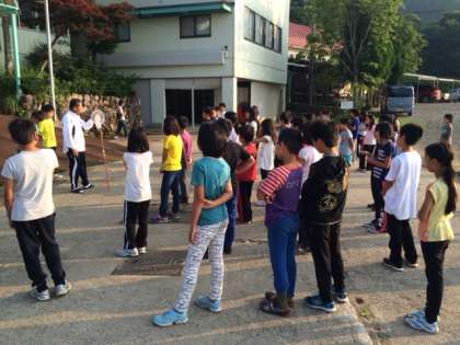 林間3日目の朝。まだ少し眠そうですが、全員元気に朝のあいさつからスタート!!