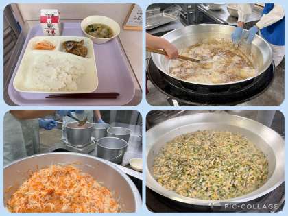 ごはん、牛乳、さばのカレーたつたあげ、五目汁、紅白なます