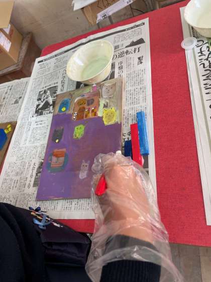 3年生の図工科です。今日は板にニスを塗りました。来週はいよいよ釘を打っていきます(^_-)-☆