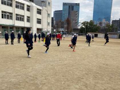 運動能力向上事業として、山村先生に来ていただき、「長距離走」の走り方について教えていただきました。今日は外が寒かったのですが、みんな、たくさん体を動かしていたので、終わった後はとても温まっていましたね。