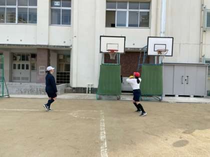 5年生は、初めてのバスケットボールの学習に取り組んでいます。