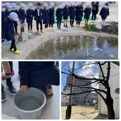 今日は、冬見つけを行いました。池やバケツの水が凍っていることや、葉がなくなっていること、風の音が聞こえることなど、たくさん冬を見つけました♪