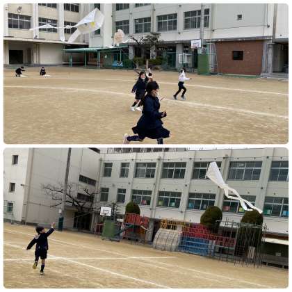 昨日は、凧揚げをしました。高く上がった凧を見て、みんな大興奮でした♪