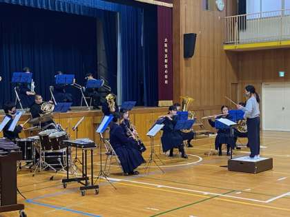 2月18日(土)に講堂でふれあいコンサートがありました。桜宮中学校吹奏楽部のみなさんが演奏したり、