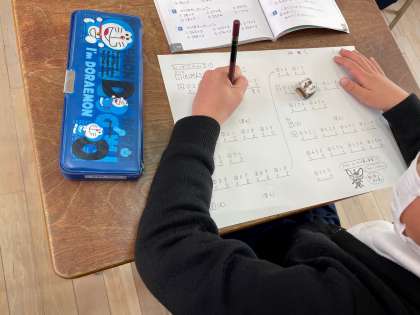 3年生の算数科です。1年間の復習をしています。わからない問題は今年度中に解けるようになっておこう!!!