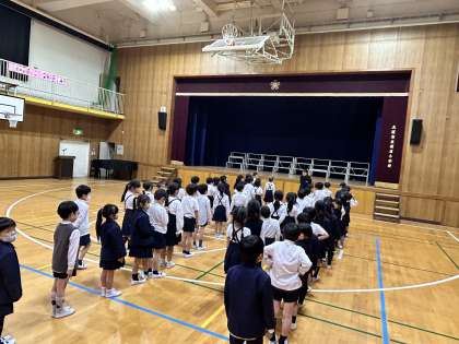 初めて学年で集まって、ドッジボールをしたり話を聞いたりしました。