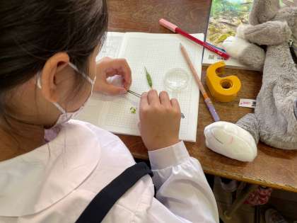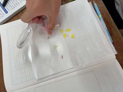 今日はピンセットを使ってアブラナの解体とスケッチをしました。実になる部分はどこなのでしょうか(・・?