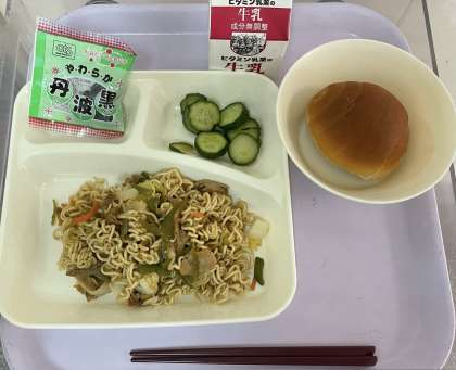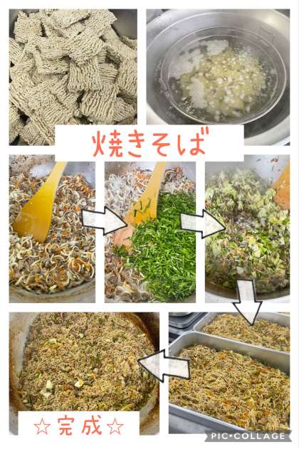 大阪市では、焼きそば麺は乾麺を茹でて使っています。ちぢれ麺なので調味料がよく絡み美味しいですよ!きゅうりのしょうがづけもさっぱりした味わいでこれからの季節にもおすすめです(^^)