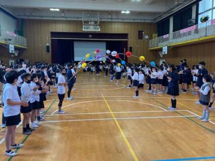 今日の2時間目に入学進級おめでとう集会がありました。1年生は桜宮小の仲間入りをしたこと、2年生から6年生は一つ学年があがったことをみんなでお祝いしました!!代表委員会の子たちが中心となり、桜宮小クイズをしたり、桜宮小のダンスを踊ったりして楽しく過ごせました。