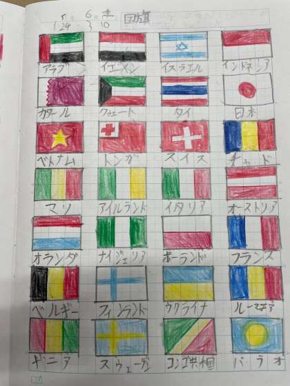 自主学習ノートです。休みの間に行ったところをまとめたり、復習をしたりしていました。よく頑張りました('ω')