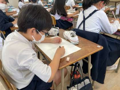 そのくつとの思い出を胸に、汚れまでよく見て紙に描いていきます!完成が楽しみです!!