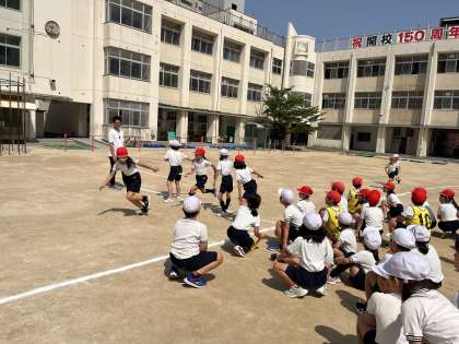 バトンを上手く渡せると速くなることを学び、一生懸命全力で走りきりました!よく頑張りましたね(^-^)