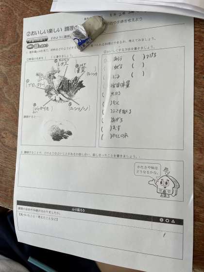 次の調理実習にむけて学習中です。野菜は茹でるだけで見た目も味も大きく変化しますね(>_<)